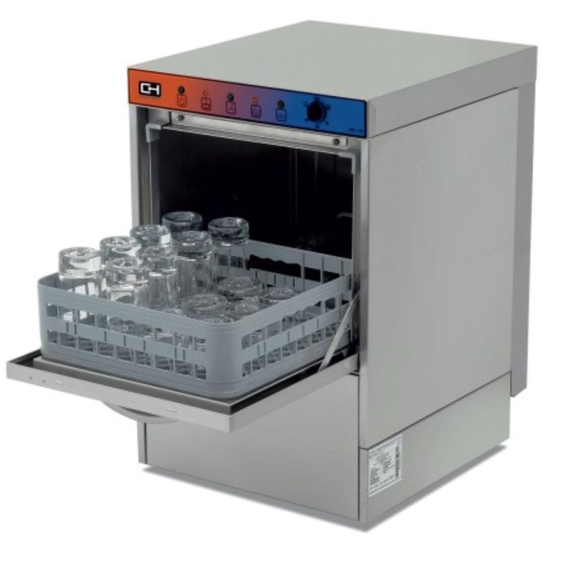 El lavavasos industrial CH400ECOB-N ha sido diseñado para ofrecer alto rendimiento en espacios compactos. Con una estructura robusta en acero inoxidable, garantiza durabilidad, higiene y facilidad de limpieza gracias a sus esquinas redondeadas y formas lineales.