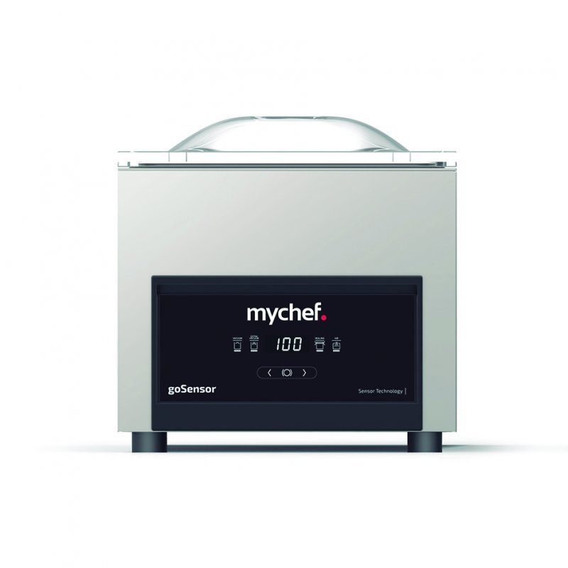 Envasadora al vacío GoSensor S TGS8 de Mychef semiautomática con tecnología inteligente controlada por sensor. Está fabricada en inox AISI 304. Dispone de programas especiales para líquidos, alimentos delicados y porosos.
