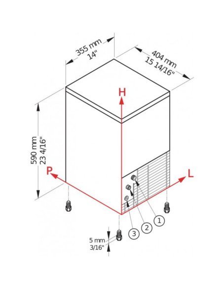 Sus dimensiones son 35,5 x 40,5 x 59 cm. y cuenta con una capacidad de producción baja idóneo para negocios de hostelería pequeños.