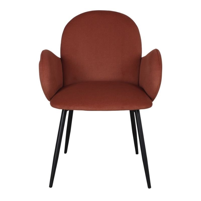 Con una estructura tubular de acero pintado en negro y un asiento y respaldo tapizados en textil, ofrece un toque acogedor y elegante para cualquier ambiente. Sus dimensiones son 61 x 62 x 83 cm, con una altura del asiento de 47 cm y reposabrazos a 67 cm.