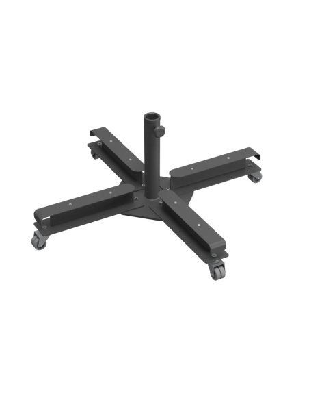 La base KIT CROSS en color antracita es una solución robusta y duradera para fijar parasoles de gran tamaño. Su estructura central está fabricada en hierro decapado, cincado y lacado al horno con pintura epoxi, ofreciendo una excelente resistencia a la intemperie y protección contra los rayos UV.